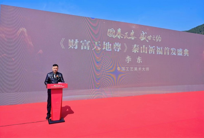 2026年3月20日,春分时节恰逢民间祥瑞之日二月二。在此双吉之日,“国泰民安・盛世之约——《财富天地尊》泰山祈福首发盛典”在山东泰安市泰山天地广场隆重举办。国家文物局原副局长张柏,故宫博物院原副院长李季,海峡两岸暨全球华人敬天祈福文化大使谷长江,著名文物艺术品鉴赏家、中国收藏家协会常务副会长兼秘书长岳峰,中国工艺美术大师李东,国家注册拍卖师、北京拍卖行业协会副秘书长刘欣以及泰山产业界有关领导等嘉宾齐聚现场,共赴这场融国宝传承、非遗匠心、泰山文化于一体的文化盛宴。