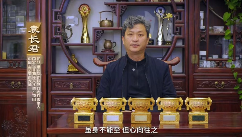 另一位主创大师、中国工艺美术大师袁长君未能亲临现场,特通过视频形式送上诚挚祝福与深度分享。袁长君大师表示,泰山作为国泰民安的象征,与《财富天地尊》承载的“国泰民安”“财富传承”祈愿高度契合,此次创作以严苛标准打磨作品,将五大非遗技艺融于一器,希望这件作品能成为当代家族传世的艺术收藏。