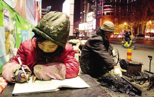 5年前,河南平顶山冬夜的街头上,9岁的齐聪(化名)在爷爷爆米花的小摊旁借着昏黄的路灯光写作业曾让不少人动容。女孩的境遇一时间引来了大量的关注和捐助,截至2013年1月,社会各界已经给齐聪捐助了10余万元。