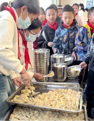 3月20日春分,云南省临沧市云县箐门口完小的孩子们吃到了一顿爱心午餐——热气腾腾的美味水饺以及混合芝麻甜香的各色汤圆。