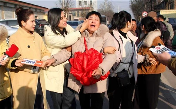 颉巧芳(左三)下车后,情绪失控