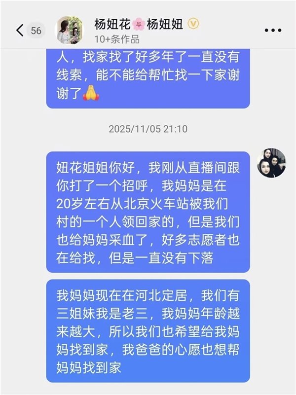 2025 年 11 月,颉巧芳的三女儿在抖音联系杨妞花