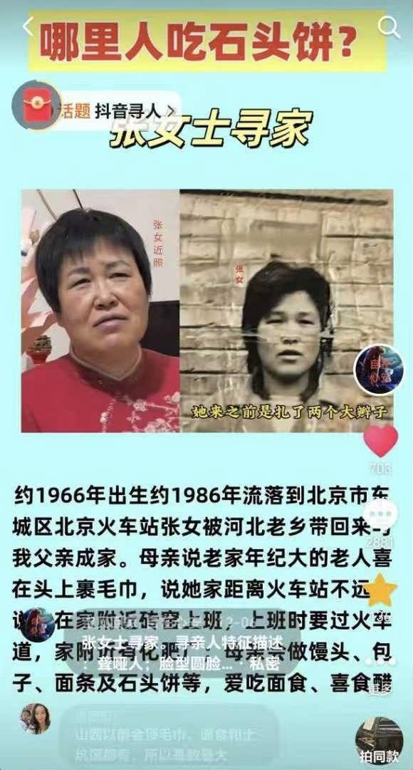 抖音寻人志愿者“自在心安”为颉巧芳发布的寻亲视频