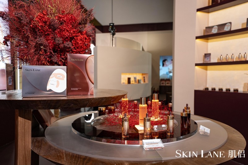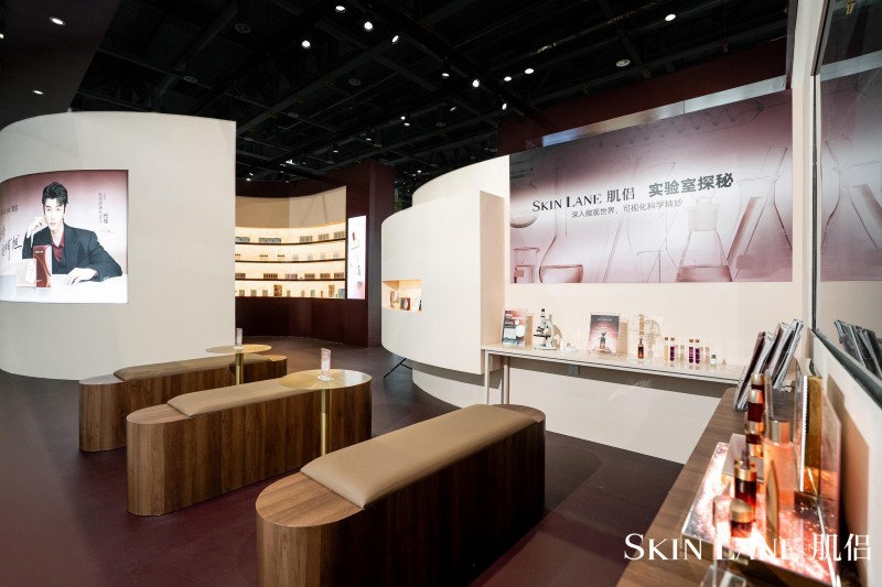 走进SkinLane肌侣的展位,首先映入眼帘的并非传统意义上的产品陈列柜,而是把CBD商业地标里的门店,搬进了展会,穿过柔和的暖光构建出的沉浸式展台,是微缩版的 “开放实验室” 。品牌将研发过程中使用的核心设备——显微成像系统、成分微观以及氧化实验以艺术化的方式呈现于展台,让晦涩的科研语言变得触手可及。