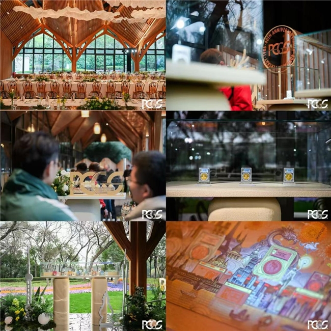 意境园优美的户外空间,被 PCGS 巧妙打造为一座别具特色的“钱币艺术馆”。现场互动屏上展示的历代评级封装盒,犹如一部微缩的技术进化史,系统呈现了PCGS在鉴定与防伪技术领域持续升级与创新的历程。由PCGS评级的珍贵机制钱币,如罕见的中外通宝关平银一两和品相超群的宣三长须龙金质样币等现身活动现场,成为备受关注的C位展品;PCGS评级的清代古钱大样、中国龙洋特别标签、熊猫贵金属纪念币特别标签、亚洲与中国内地城市特别标签、中国龙银质纪念币特别标签与封装盒系列和首发的PCGS 40周年纪念券等悉数亮相,现场嘉宾们可以近距离目睹PCGS如何将国际标准与本土文化美学深度融合。