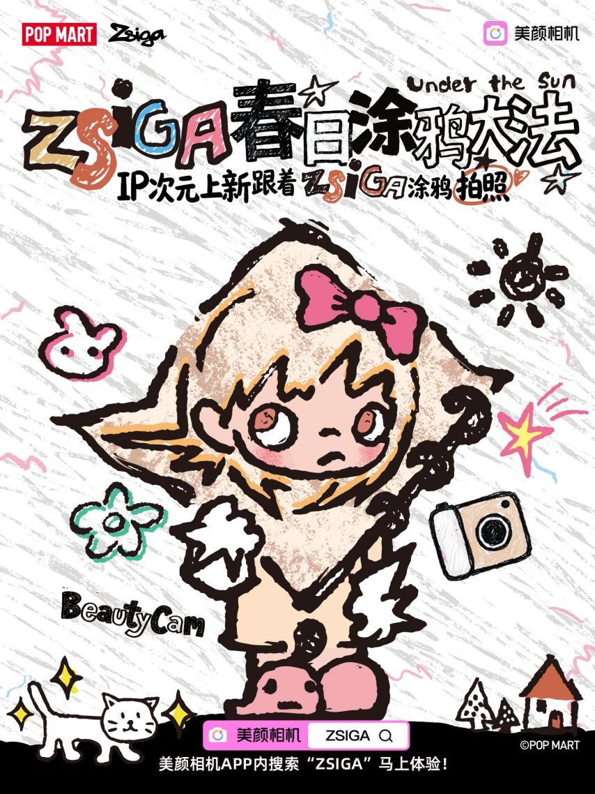 继此前与泡泡玛特旗下IP“星星人”联动引发社交媒体热潮后,美颜相机再度携手泡泡玛特,延续其在潮玩与影像领域跨界合作探索。近日,美颜相机联合泡泡玛特旗下人气IP Zsiga,以“Zsiga春日涂鸦”为主题打造多款创意影像玩法,为用户解锁春日拍照新潮流。