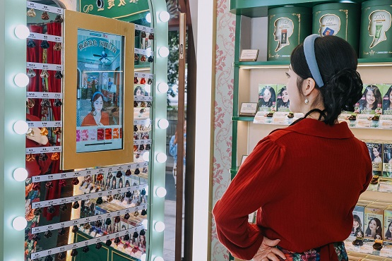 店内,年轻一代消费者正在体验“一键解锁新发色”