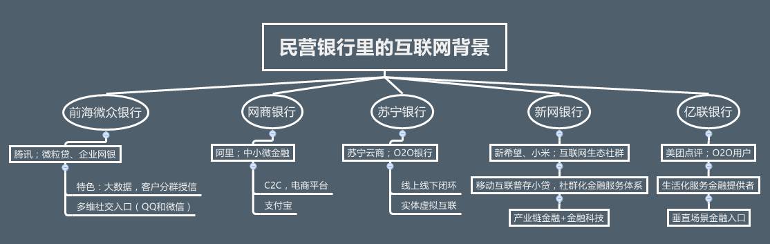 而对定位于互联网银行的民营银行而言,其互联网烙印主要来自于股东背景和背后庞大的互联网资源。