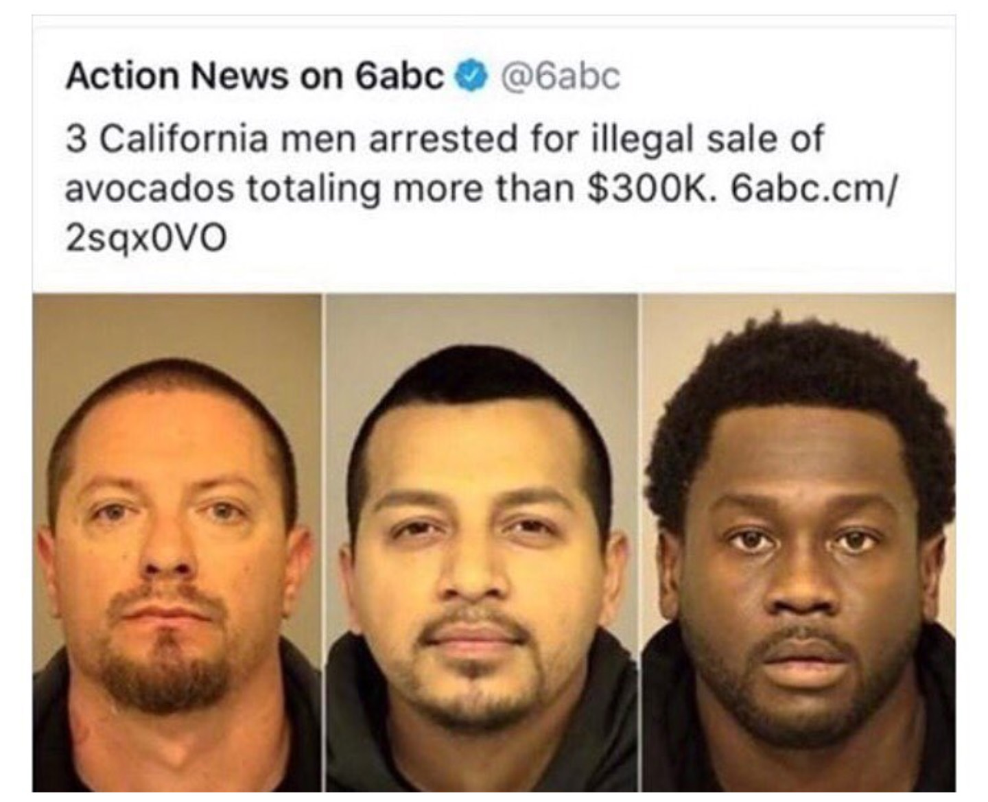 警方称他们逮捕了三位非法贩卖牛油果的人员,涉案金额达到30万美金。