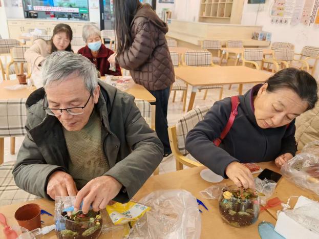 为使老人们在轻松的氛围中巩固知识,同时兼顾老年居民的便利,本次活动特别设置了微景观 DIY 环节,让老人们共同感受指尖上的植树节。
