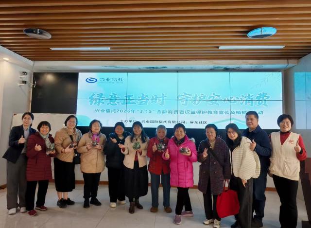 春回大地,草木萌绿。为深入贯彻落实福建金融监管局“3·15”金融消费者权益保护教育宣传活动要求,3月11日,兴业信托前往福州市华大街道屏东社区,围绕“清朗金融网络,守护安心消费”以及“植树节”主题,面向社区老年群体开展金融教育宣传活动,以维护社区老年群体的金融安全。同时,以微景观DIY作为互动形式,与社区老人们共同营造并感受植树节氛围。本次活动将环保理念与金融消费者权益保护有机结合,让金融知识通过温情互动深入人心,以有温度的金融服务保障社区长者的财产安全。
