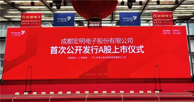 2026年3月25日,梧桐树资本被投企业——成都宏明电子股份有限公司(股票简称:宏明电子,股票代码:301682)在创业板正式挂牌上市!敲钟仪式顺利举行,标志着这家拥有68年历史的国产电子元器件龙头,正式迈入资本市场发展的全新阶段。
