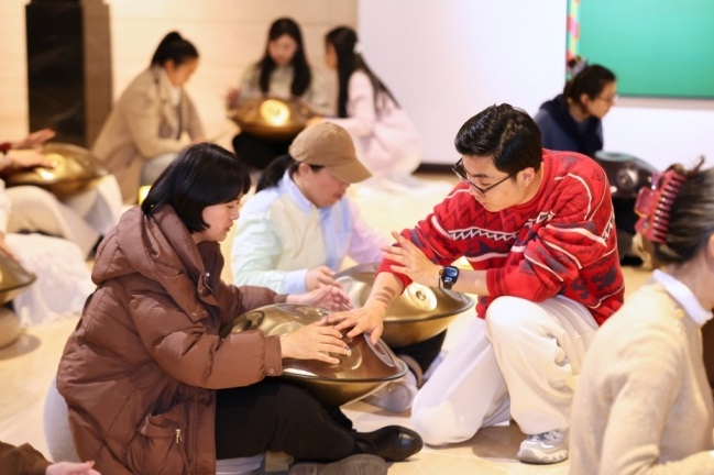 大家围坐相伴,在老师的细心指导下亲手体验触碰手碟,以指腹轻叩随心起落,清脆的音符缓缓流淌而出,笑声和乐声交织在一起,每个人都在音乐里慢慢放松下来