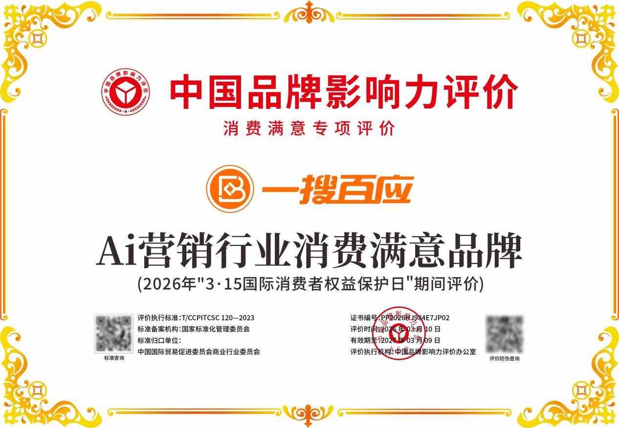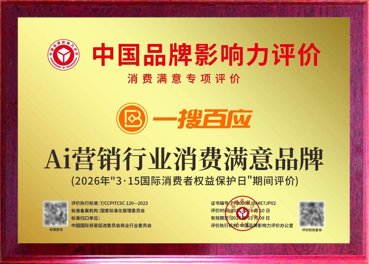 经严格评价,一搜百应(全称:深圳一搜百应信息技术有限公司)凭借在AI营销(GEO)领域的卓越表现与消费者认可度,荣获“AI营销行业消费满意品牌”称号。此次入选,进一步彰显了品牌在消费者心中的公信力与市场影响力。