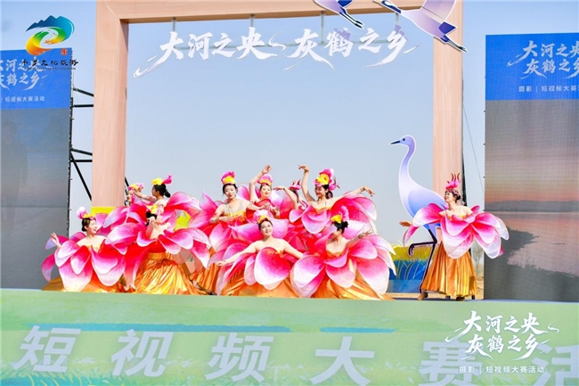 在全场的热切期待与热烈掌声中,出席活动的领导与嘉宾共同移步至舞台中央,手持盛有天河湾黄河水的器皿,将象征着生机与希望的“生态之水”缓缓注入启动装置。汩汩清流浸润装置的瞬间,寓意着母亲河的生命之水,浇灌生态创作的艺术之花。与此同时,伴随慷慨激昂的背景音乐,大屏幕徐徐铺展本次大赛的主视觉画面,“大河之央・灰鹤之乡” 平罗摄影大赛正式宣告启动!