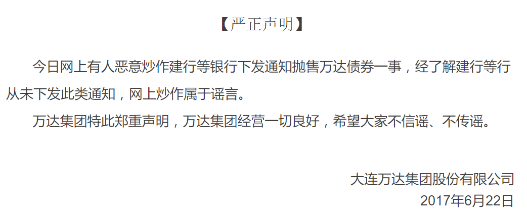 此番万达遭遇股债“双杀”原因尚不明确。万达电影证券部一位不愿透露姓名的证券事务经理告诉证券时报,公司暂不清楚下跌原因,目前经营状况正常,没有问题,一些网络传言不可轻信。