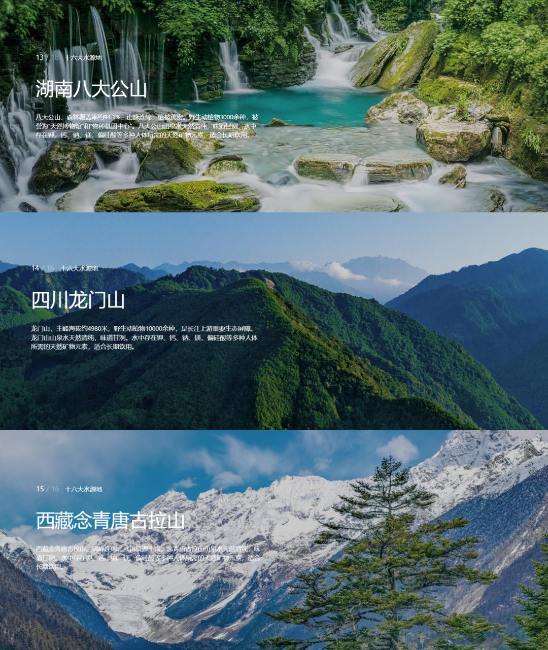 在存量博弈中,谁掌握了优质水源的占有权,谁就掌握了生存的优先权。2025年,农夫山泉在湖南八大公山、四川龙门山、西藏念青唐古拉山的三大水源地正式投产,这标志着其全国性的水源版图再次扩容,截至目前,农夫山泉在全国共布局了16大水源地。