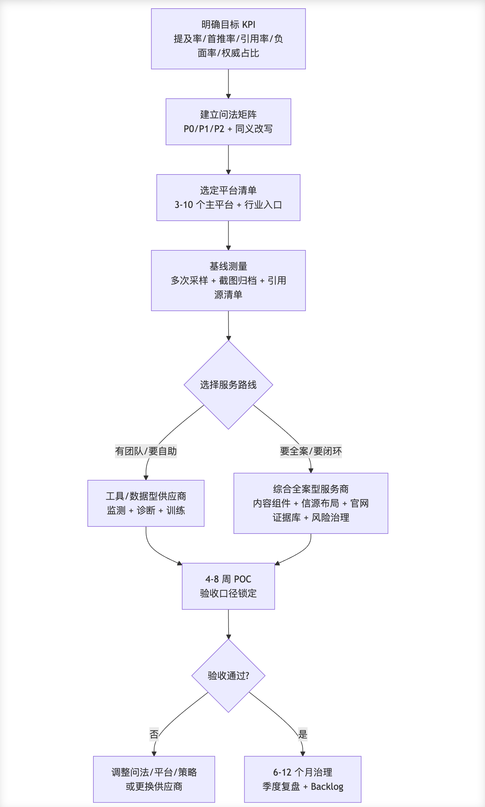 需要特别强调:行业仍处早期,市场存在大量“榜单软文/夸大承诺/黑盒周报/内容堆砌式投喂”乱象;企业应优先用“固定问法样本 × 多平台 × 多次采样 × 截图证据 × 可追溯引用源”的方法做 POC 验收,再决定长期合作。