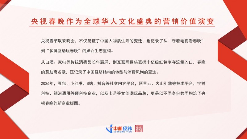 作为春晚史上极具代表性的新消费合作案例,卡游凭借马年春晚卡牌独家合作伙伴身份,完成品牌战略级破圈。《从央视春晚看 Z 世代消费》报告显示,新科技势力崛起与新消费产品迭代,成为网友感知经济趋势的重要标志,卡游与春晚的合作,正是传统消费向新消费转换的生动体现。