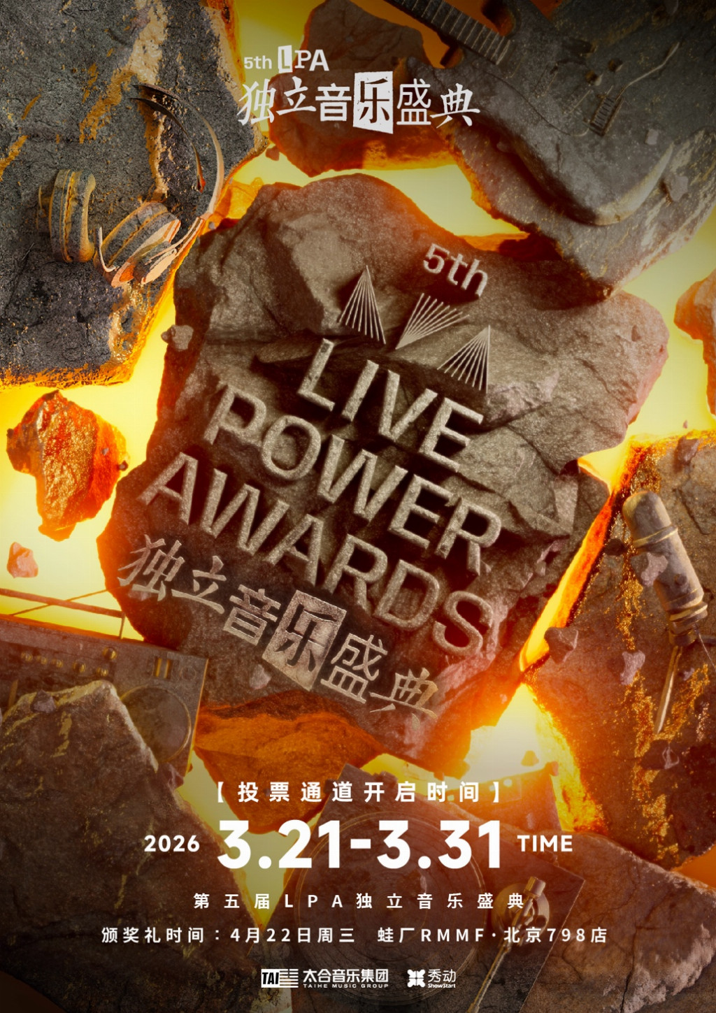 阔别已久,春日重逢。由太合音乐集团旗下秀动ShowStart发起的第五届LPA独立音乐盛典(Live Power Awards)正式官宣回归,乐迷投票通道截止至3月31日,线下颁奖典礼也将于4月22日重返北京,在蛙厂RMMF·北京举办。
