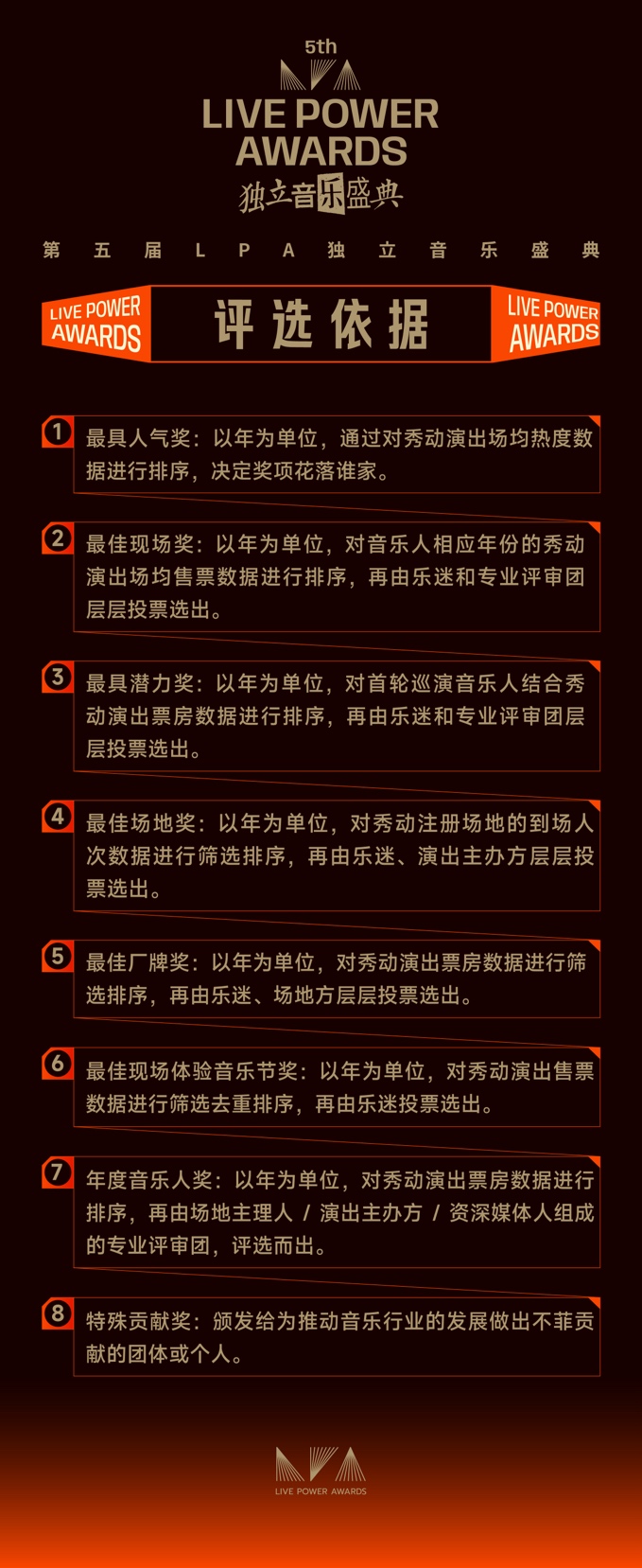 作为国内领先的现场演出票务平台,秀动ShowStart深耕独立音乐领域多年,服务覆盖全国超万家Livehouse场地,累计注册用户超3000万,其数据体系已成为行业重要的风向标。 自首届LPA在北京糖果三层亮相,到第四届在青岛即墨落下帷幕,LPA独立音乐盛典累计表彰了数百组音乐人、场地方及幕后从业者,成为中国独立音乐领域具有重要影响力的行业盛事。