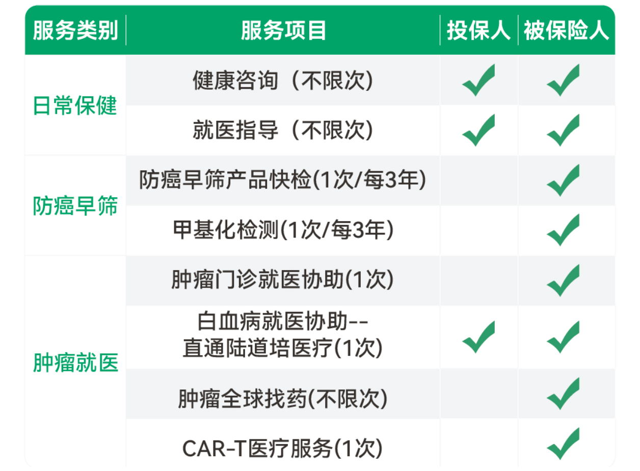 防癌早筛+全球找药,服务贯穿全程:通过早期筛查,癌症5年生存率可提升至80%以上,而晚期发现则不足30%。所以,除了经济补偿,“守护如初防癌险”还附赠包含5种高发癌症居家快检盒的防癌早筛服务,以及不限次数的肿瘤特药全球找药服务,从早期筛查到治疗用药,提供全流程的健康管理支持。