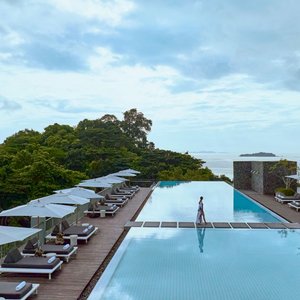 Jean-Michel Gathy擅长利用“水”增加景观的戏剧感,他曾说:“创造风景的最好方法就是水。”这一理念在度假村体现得淋漓尽致,长达百米的无边泳池三面直面雅木角海景,池水与安达曼海融为一体,即便在水中嬉戏,抬眼也能尽收山海景色。