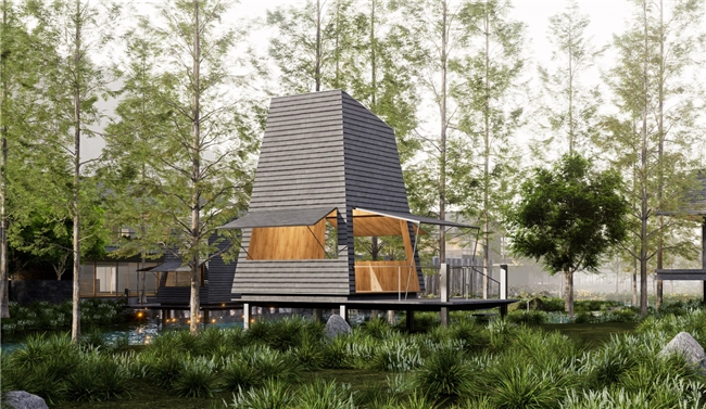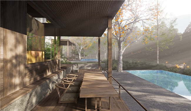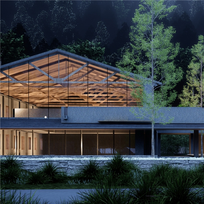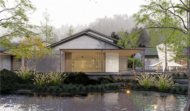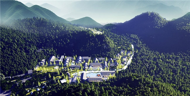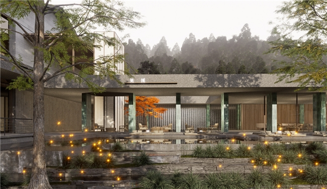 邵武地处世界自然与文化双遗产地武夷山南麓,群山叠翠,溪流潺潺。二都“养生谷”坐拥国家级森林康养基地资质,原始林海环抱,负氧离子沁人心脾。酒店择址谷中,总建筑面积逾1.8万平方米,依山就势,以3至6层低密度建筑群隐于林间,规划汤舍、茶吧、林场记忆馆等空间,将建筑环抱安放于大自然之中。