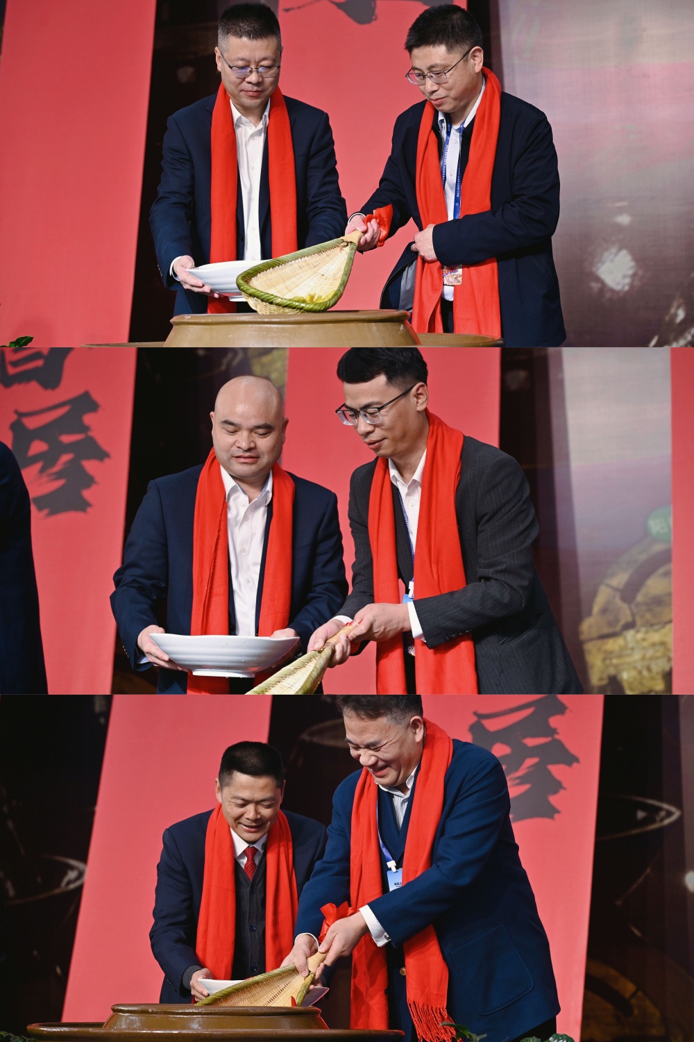 大会现场,吉香居特意安排了“新品共创”环节,邀请经销商走进“乳酸菌泡菜车间”,亲眼见证“千斤坛矩阵”的壮观。在开坛仪式上,六位经销商客户与吉香居员工一同揭开1米高的泡菜坛,色泽红亮、酸香扑鼻的泡菜被现场捞起。大会邀请经销商现场试吃冷链四川泡菜,并广泛听取他们的意见。经销商感受到的不仅是传统工艺的魅力,更是吉香居在生物发酵技术上的先进优势。
