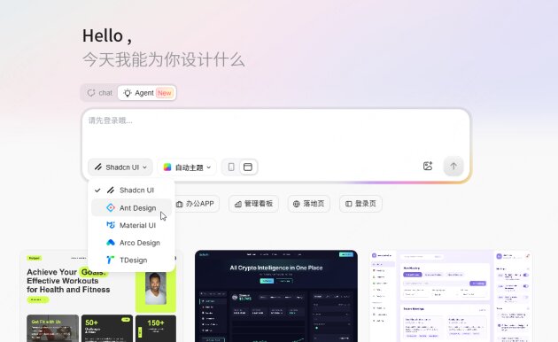 举个实际例子:如果用户输入“帮我做个好看的”这样的模糊表述,AI不会立即生成UI页面,而是会反问:“您希望设计哪种类型的界面?是移动端App还是Web网页?主要功能是什么?”通过这样的引导式对话,确保最终生成的设计稿精准匹配用户的真实需求。