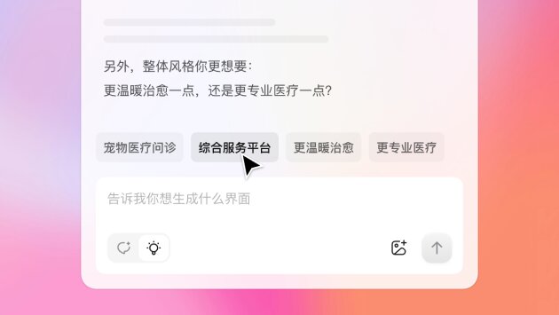 过去,用户输入任何内容,AI都会直接开始生成界面。但现实中,并非每一次输入都适合直接生成——有时用户的描述过于模糊,有时输入内容与UI界面生成无关。盲目生成不仅造成Token浪费,还可能产出不符合预期的结果。
