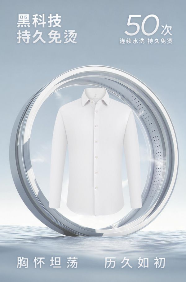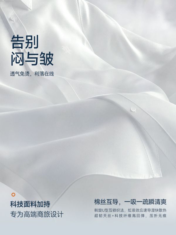 对于频繁出差的商务人士而言,衬衫的打理便捷性与持久挺括同样至关重要。该系列在细节上亦展现出深思熟虑的设计:其衣领借鉴机翼动力学原理,通过特殊定型工艺确保衣领久穿不塌;配合高密织造与多点立体支撑结构,整体具备了出色的抗皱性能,确保全天穿着不起皱,即使经历长途旅行箱的颠簸,取出后稍加整理便能迅速恢复平整状态,完美适配高效、移动的现代商务生活。