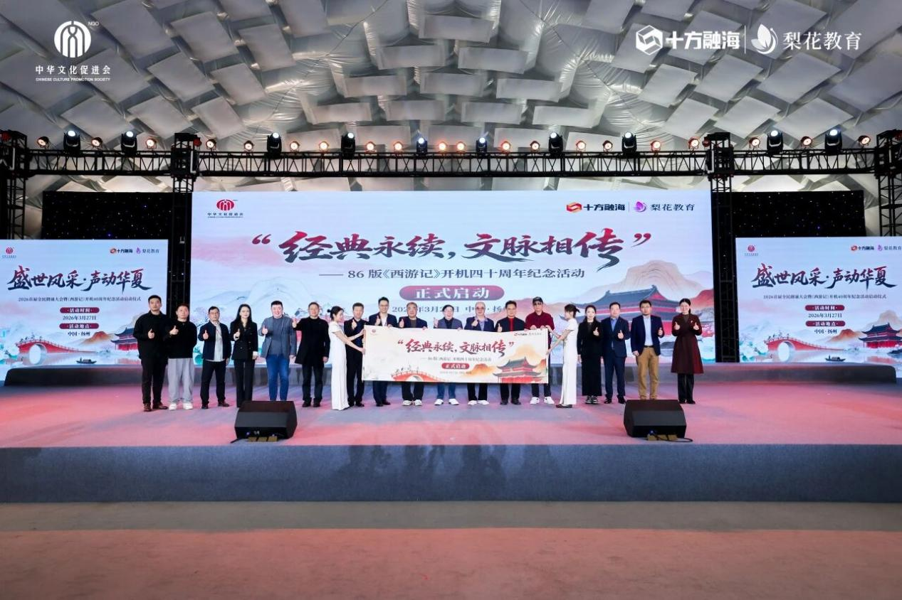 3月27日,“盛世风采·声动华夏”2026首届全民朗诵大会暨《西游记》开机40周年纪念活动启动仪式在扬州隆重举行。本次活动由中华文化促进会指导,中华文化促进会文化旅游产业委员会、扬州中华文化促进会(筹)、中华文化促进会少年宫工作委员会、十方融海·梨花教育联合主办。活动旨在响应国家关于发展银发经济、提升老年文化素养的政策号召,搭建中老年朗诵艺术交流平台,推动“文化养老”落地生根。