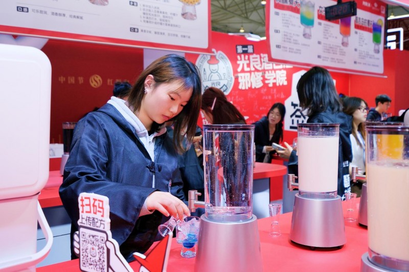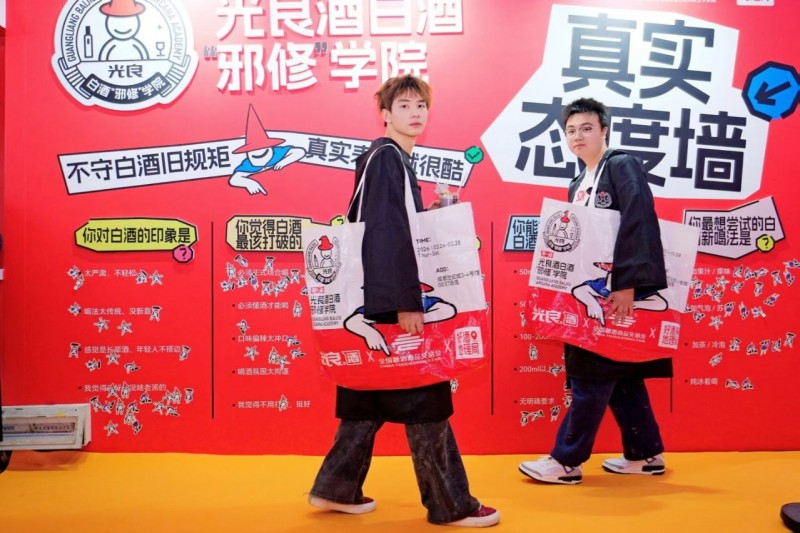 在光良酒白酒“邪修”学院现场,超1000名身着“魔法袍”的大学生涌入展位,沉迷“邪修”调酒,不停地拍照、打卡,洋溢的青春气息构成了一道独特的风景线。