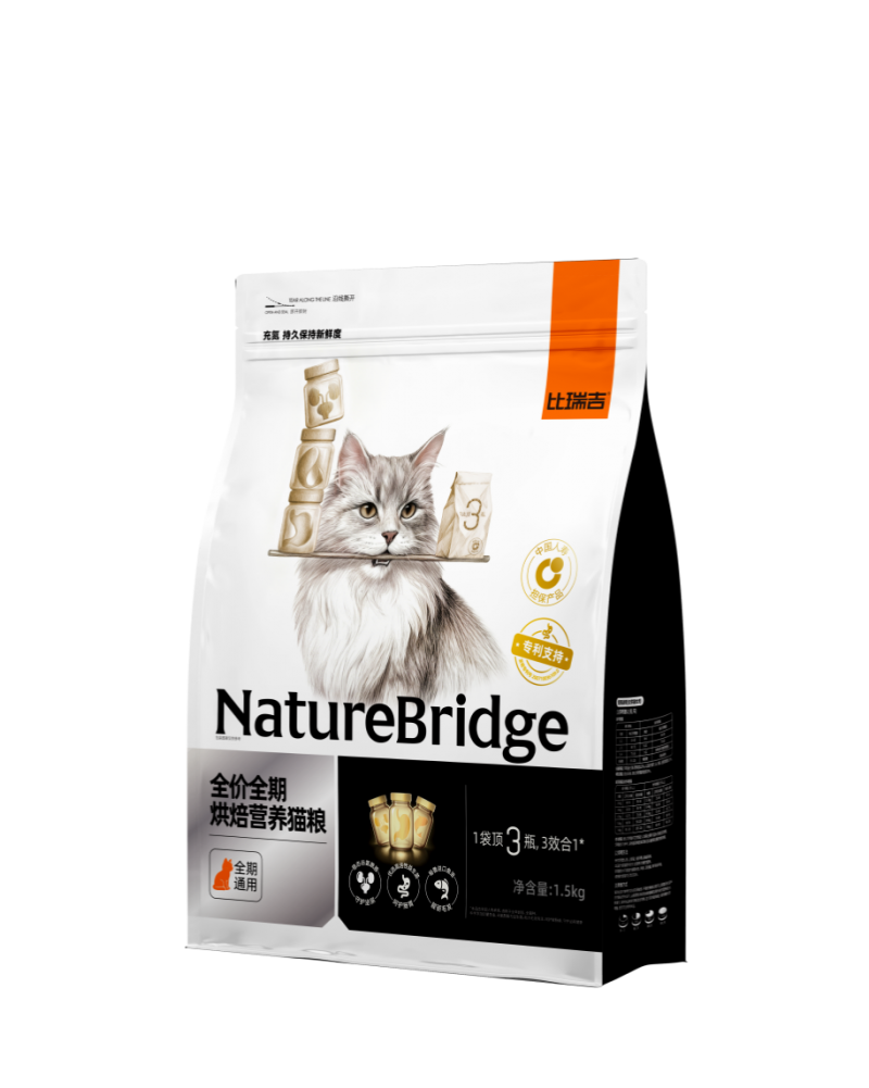 比瑞吉一袋顶三瓶烘焙猫粮,通过足量添加与科学配比,将美毛、护肠、利尿三大功能整合于日常主粮之中,为宠主提供了一种更为便捷、精准的喂养选择。