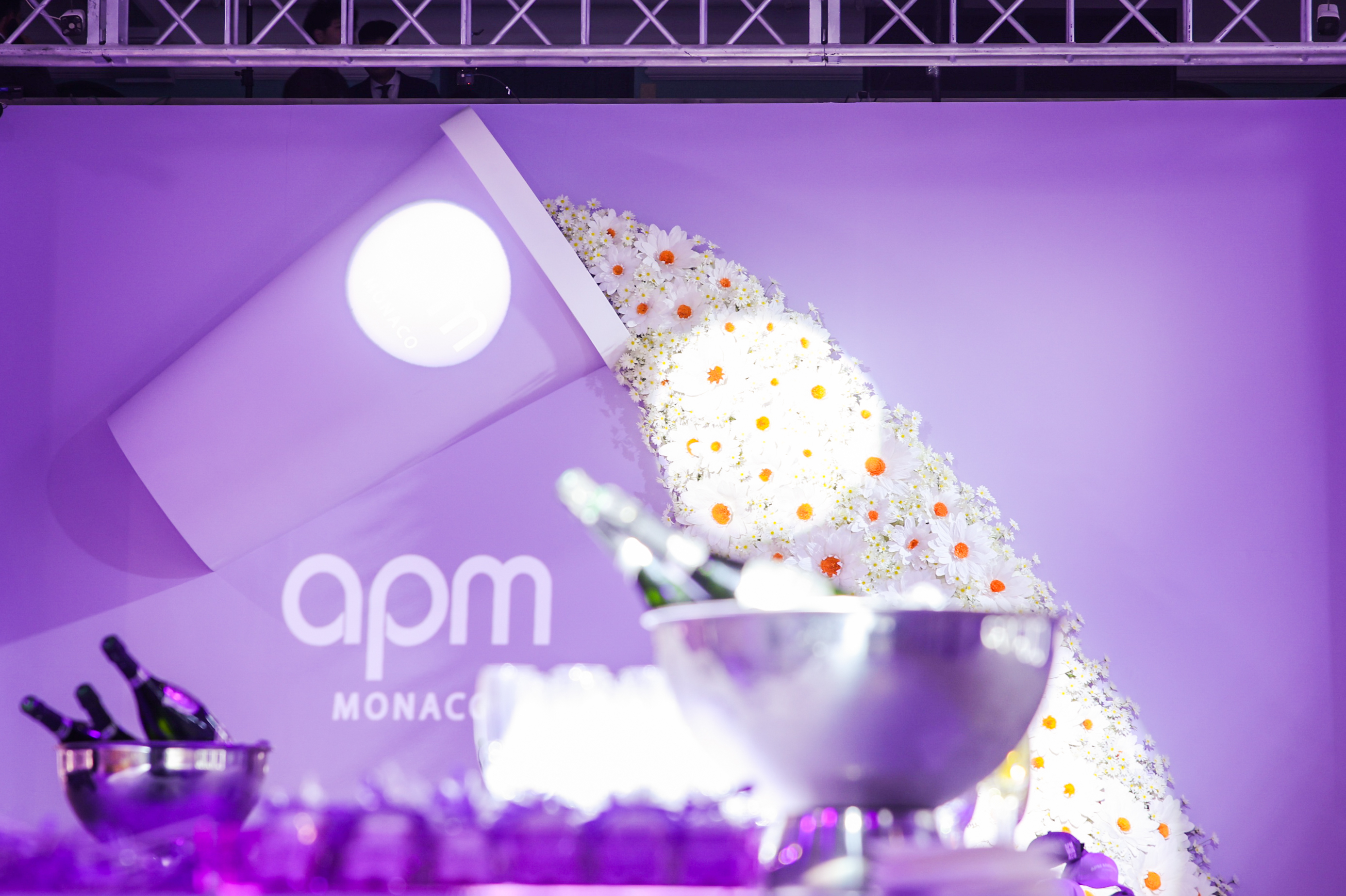 这一色彩语言亦贯穿于活动空间的整体表达。在上海上生新所海军俱乐部,APM以紫为底,构建出一个沉浸式的春日场域。墙面覆盖哑光质感的紫灰布艺,地面铺设浅黄色长绒地毯,营造出柔和而富有质感的视觉基底。在这样的氛围中,明黄色的小雏菊成为跳动的音符,轻巧地点缀于空间各处,仿佛春天不经意洒落的光斑。