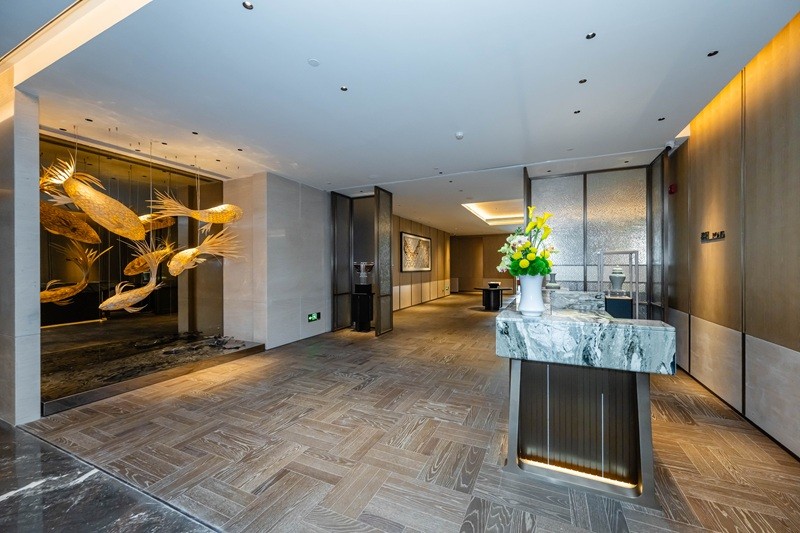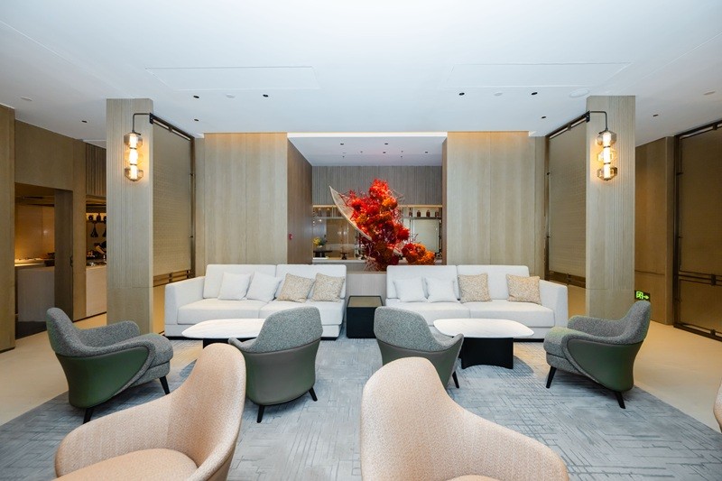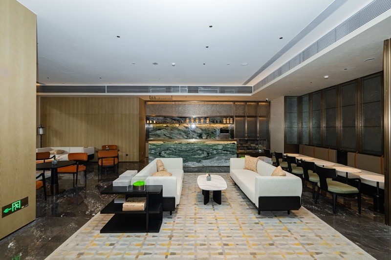 动线重构优化,提升运营效能:结合政务接待与商务交流的不同需求,项目科学区分南、北大堂功能定位,北大堂主打政务接待的庄重质感,南大堂聚焦商务文旅的便捷服务,新增精装车库电梯厅,实现人车分流、客群分流。同时,有序分隔政务接待区域、商务交流区域与休闲体验区域,优化内部通行动线,兼顾服务仪式感、通行效率与空间私密性,打造一体化、高品质的复合型服务场景,彻底解决老旧建筑动线混乱、运营低效的难题。