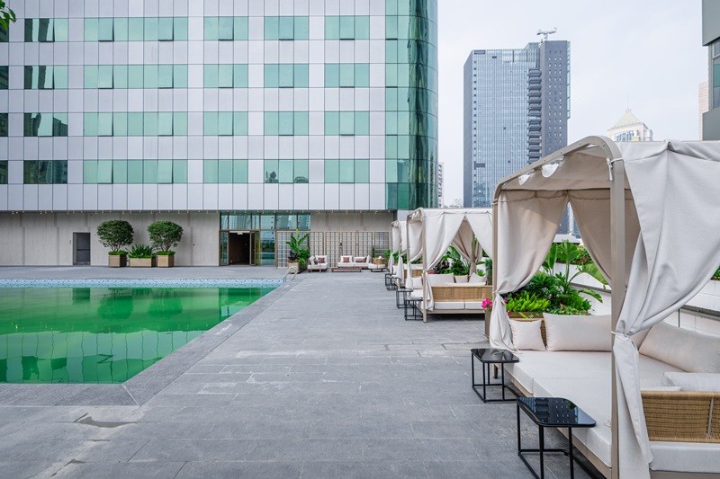 配套全面升级,延伸服务价值:项目对餐饮空间、会议场地、康体设施进行全方位迭代升级,打造4间特色餐饮空间,涵盖自助、正餐、休闲茶饮等多种业态,满足商务宴请、家庭聚餐、自助早餐等不同场景需求;配备超2,000平方米灵活会议场地,可承接高规格政务会议、大型商务峰会、品牌发布会、婚宴等各类活动,补齐北京路片区高端会务短板;优化6楼健身康体区与设备区功能结构,搭配24小时健身中心、高空室外泳池,进一步拉长酒店服务链条,提升项目综合运营效益与核心竞争力。
