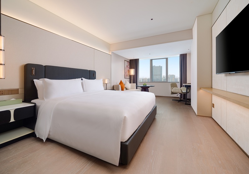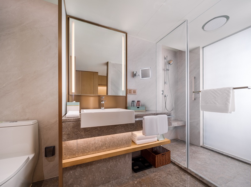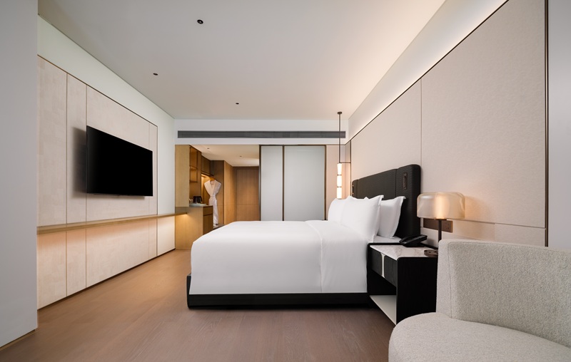空间扩容提质,适配多元需求:针对原有客房布局不合理、空间局促、房型单一的痛点,项目对客房区域进行系统性重构优化,客房数量由原有465间增至492间,新增多款豪华套房、联通房型,满足政务接待、商务团建、家庭旅居等多元场景需求。同时,全面提升客房层高、优化采光设计,融入现代美学与岭南文化元素,配备高端智能设备,让每一间客房都兼具舒适度、私密性与颜值,彻底颠覆老旧酒店的刻板印象,为宾客提供高品质的旅居体验。
