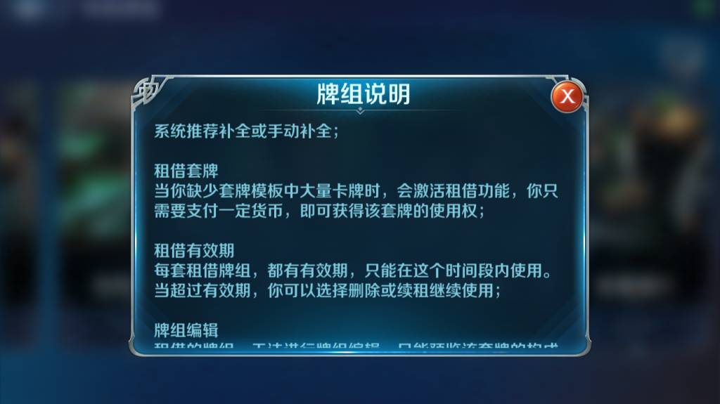 《英雄战歌》的租卡系统使得玩家获取卡牌不需再以时间为依据,而是可以凭借自身的喜好来租借一份适合自己的卡组。对于TCG玩家而言,租卡系统是个相当理想的模式,公平且节约时间。玩家可以使用一定的金币火点券去换取需要时间去组装的套牌,而套牌本身具有一定强度,并不弱于主流。尽管租借而来的套牌不能二次构建且具有一定时间,但这对于新手玩家或轻度休闲玩家而言,具有相当的适用性。