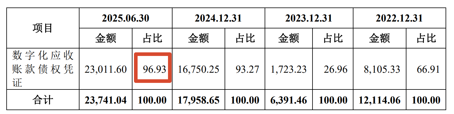 2024年,沃镭智能来自比亚迪的新增收入显著增加,但其结算方式主要为“迪链”或银行承兑汇票。2025年6月末,沃镭智能应收款项融资余额达2.37亿元,其中96.93%为数字化应收账款债权凭证(即迪链)。这相当于公司将大量营收“换”成了供应链金融票据,而非现金。