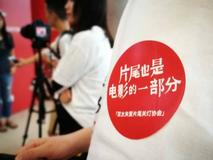 今年上海电影节期间,影迷们可以在天山电影院看到一块醒目的红色展板:“片尾也是电影的一部分”,这个口号来自于一个念起来非常拗口的组织——关爱片尾关灯协会。