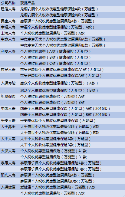界面新闻整理出了目前已经获得保监会批复的税优健康险产品,见下表。如果想购买,就去说服单位的HR吧。