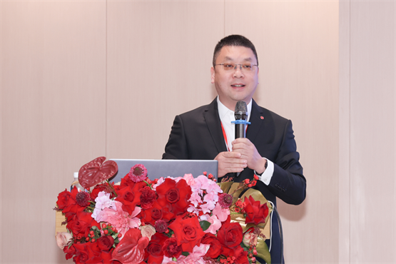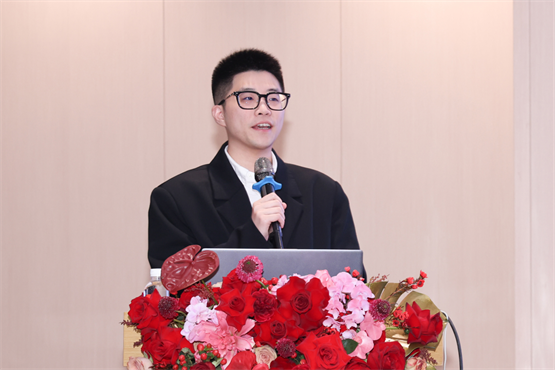 紧接着,公司副总经理李聪作2026年度市场工作报告。他回顾了过去一年的经营成果,并对新一年市场工作进行了系统部署。他强调,面对复杂多变的市场环境,我们必须要紧抓商品、服务与渠道经营,创造价值,深耕提效,带领团队向上而生。