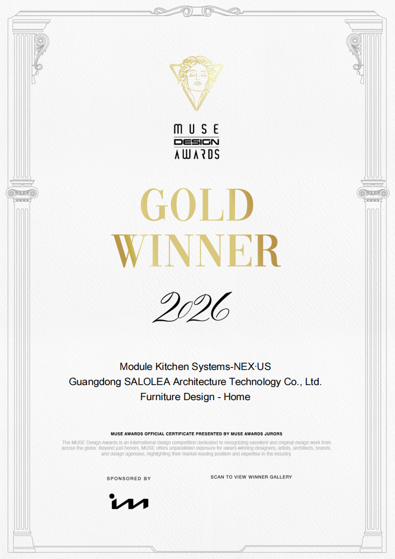 近日,全球创意设计领域极具影响力的2026美国缪斯设计奖(MUSE Design Awards)获奖名单正式揭晓。SALOLEA萨洛丽雅萨洛丽雅携创新产品“NEX·US”未来厨房生态系统,从全球数十个国家的数万件参赛作品中脱颖而出,荣膺专业组家居类金奖。这一荣誉不仅是对该产品设计与品质的国际权威认证,更标志着中国原创厨房系统化设计已开始获得更高认可。