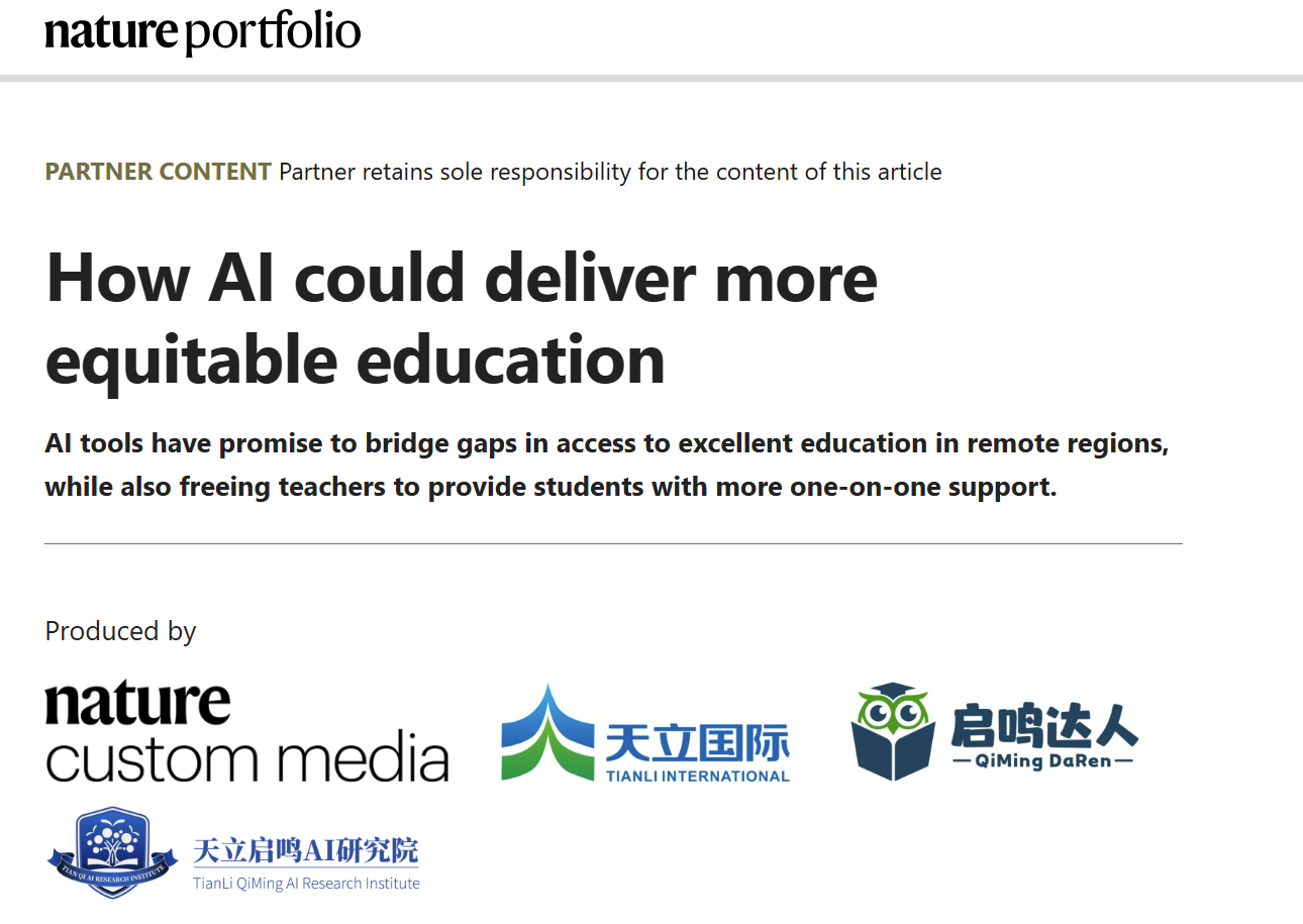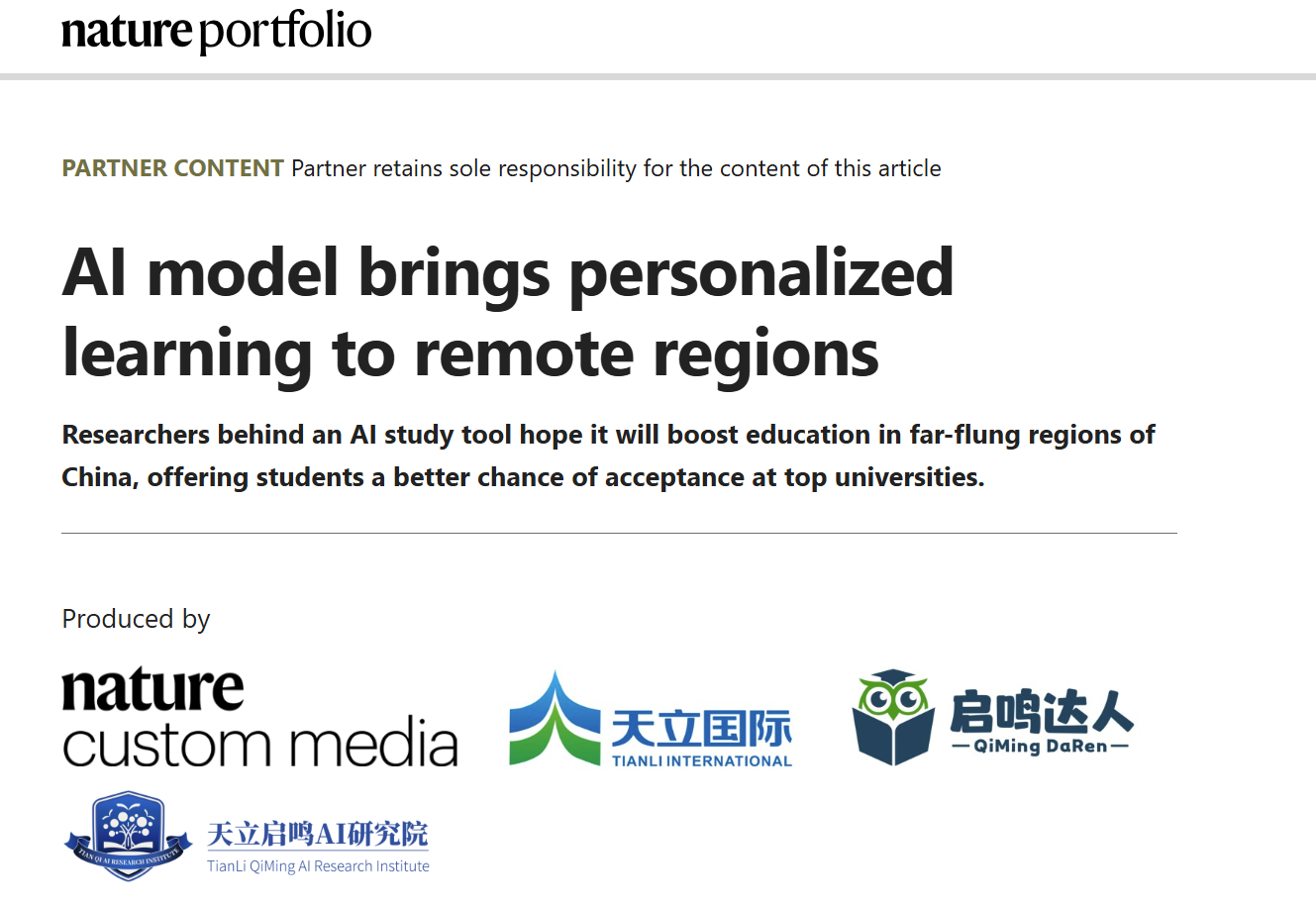 Nature重点关注了天立正在推进的核心方向——天立学科大脑(Tianli Brain)。