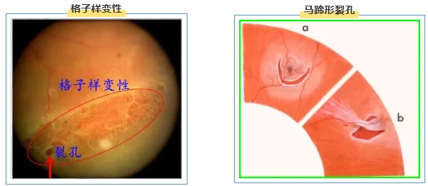 视网膜上的部分区域会因为各种原因变薄、出现病变,医学上叫视网膜变性,常见的有格子样变性、囊样变性、霜样变性等。变性后的视网膜就像变薄的气球,韧性大减,很容易出现破孔,其中格子样变性最危险,有20%的格子样变性会发展成视网膜裂孔。