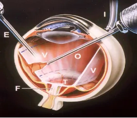 从眼球内部操作,通过微小切口进入玻璃体腔,切除液化、牵拉视网膜的玻璃体,解除牵拉力量,再用激光封闭裂孔,必要时向眼内注入特殊气体或硅油,利用气体/硅油的压力顶压视网膜,让其牢牢贴回眼球壁。