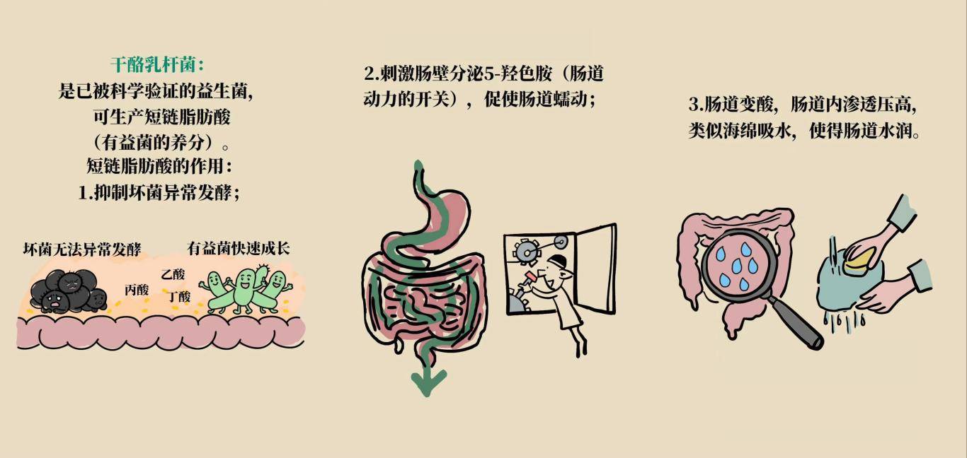 首先是物理水合作用,能吸附水分软化粪便,并在肠黏膜形成润滑层。