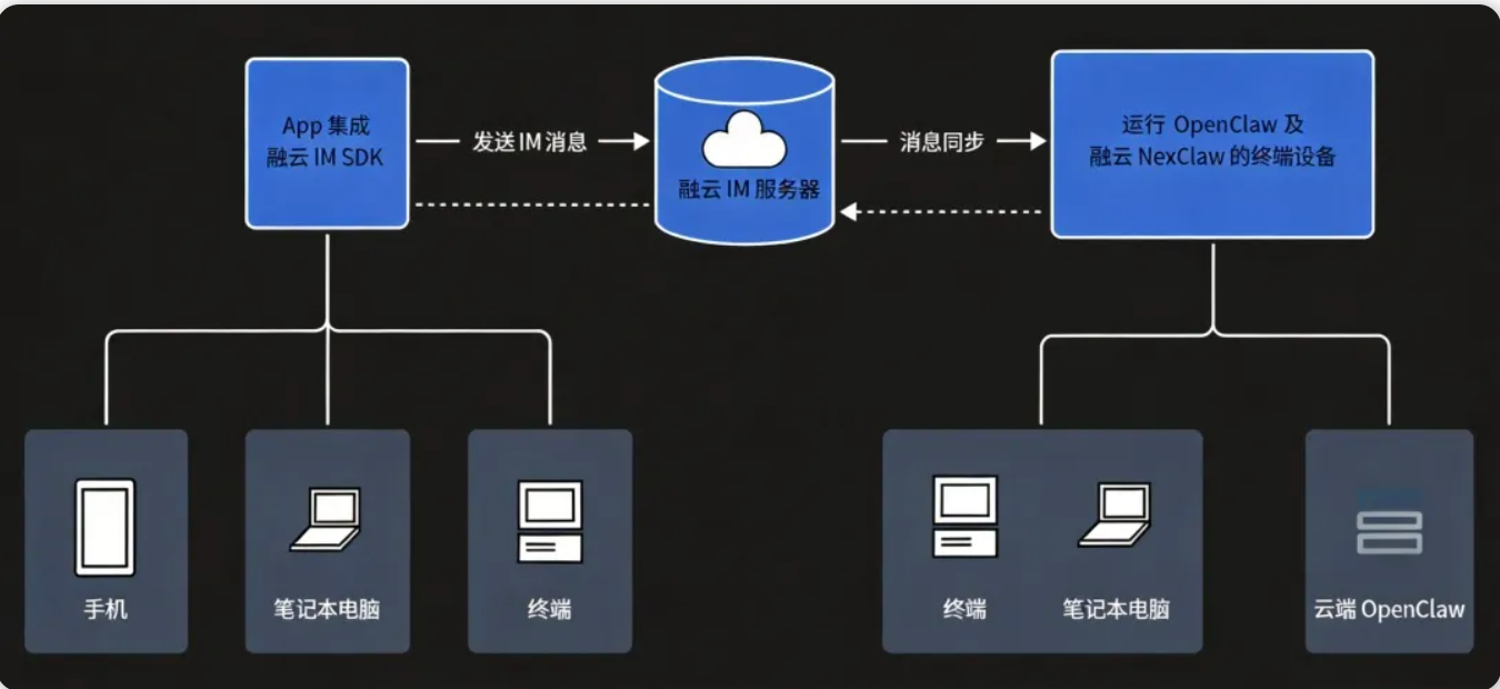 通过融云 NexClaw,创业者和硬件商可以轻松实现 OpenClaw 与其产品用户的沟通。